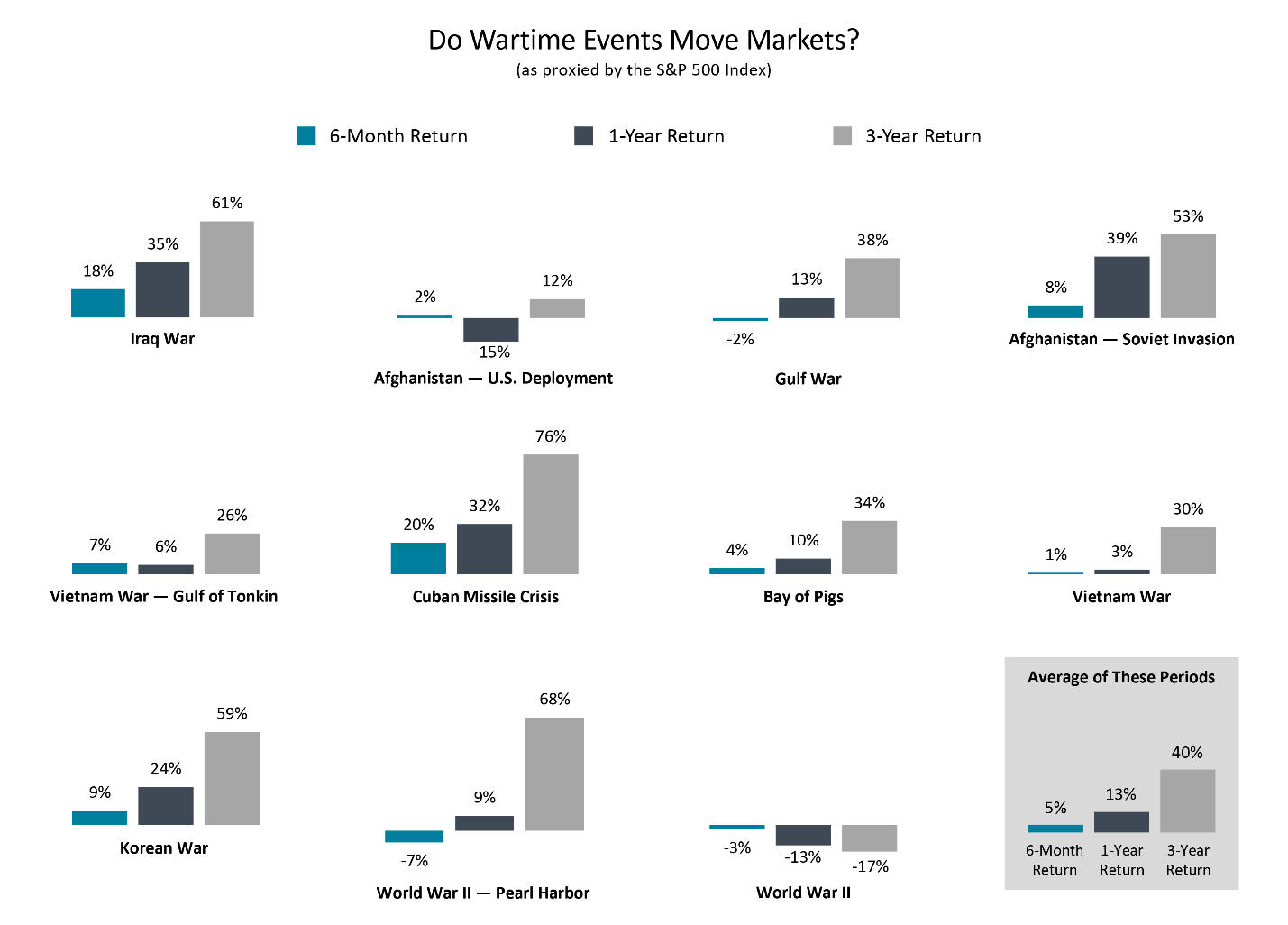 It is natural to feel anxiety when conflict dominates the news. Markets can react to war with sharp, short-term declines as the news breaks. But the data tells a consistent story: In most cases, initial downturns tend to be followed by reasonable market returns.