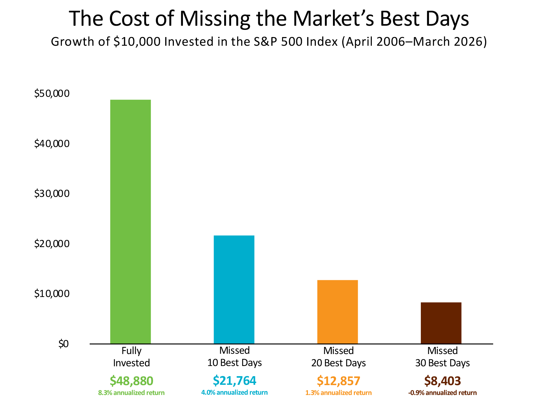 The lesson here is not that war is good for markets. It is that markets price in war-related events rapidly, may get bumpy, and eventually look ahead to recovery. By the time you are reading about a conflict in the news and worrying about its economic effects, that information is already being rapidly priced into today’s stock prices. Selling at lower prices means locking in the decline and risking missing the recovery.